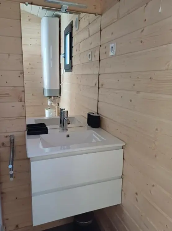*angenehmes Chalet, gut ausgestattet und dekoriert, sehr funktionell, groß für 2 Personen (3 Zimmer + Terrasse, 49 m2); viel Ausrüstung (auch wenn wir nur sehr wenig davon genutzt haben).